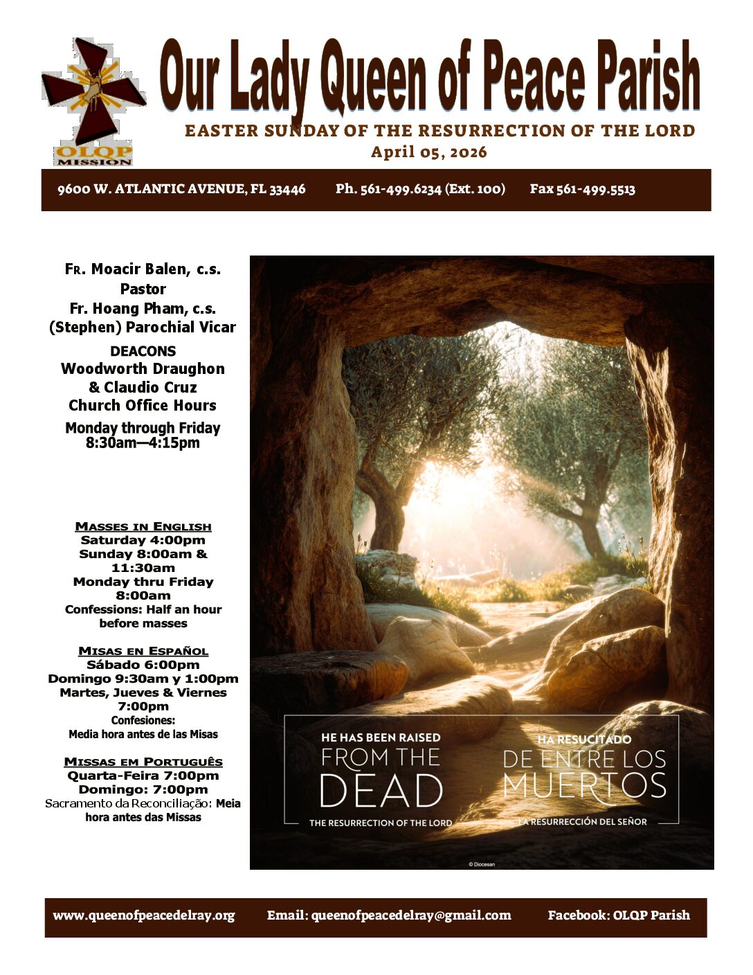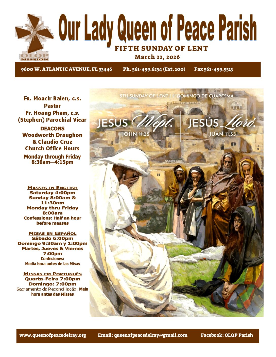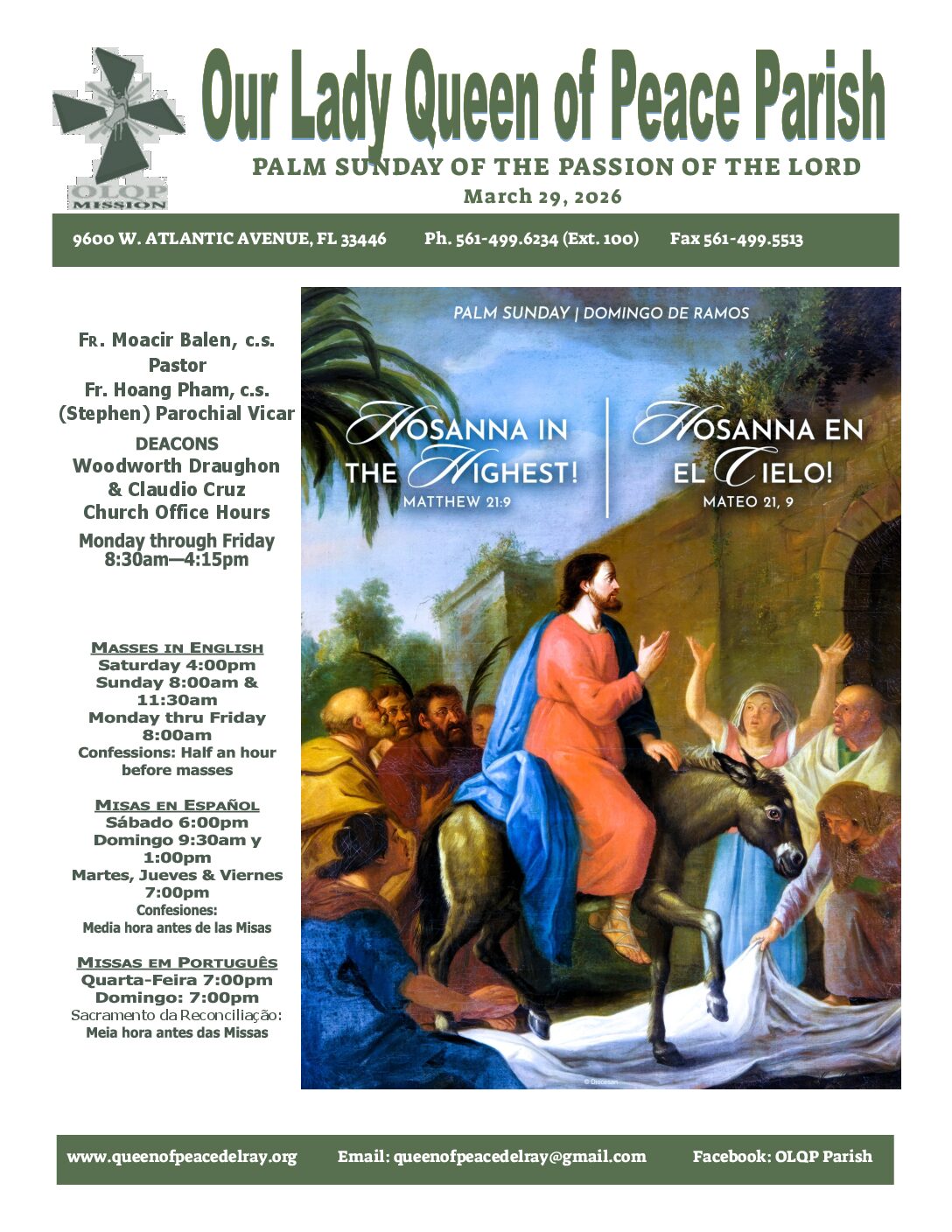 E-mail: queenofpeacedelray@gmail.com / Facebook: OLQP Parish