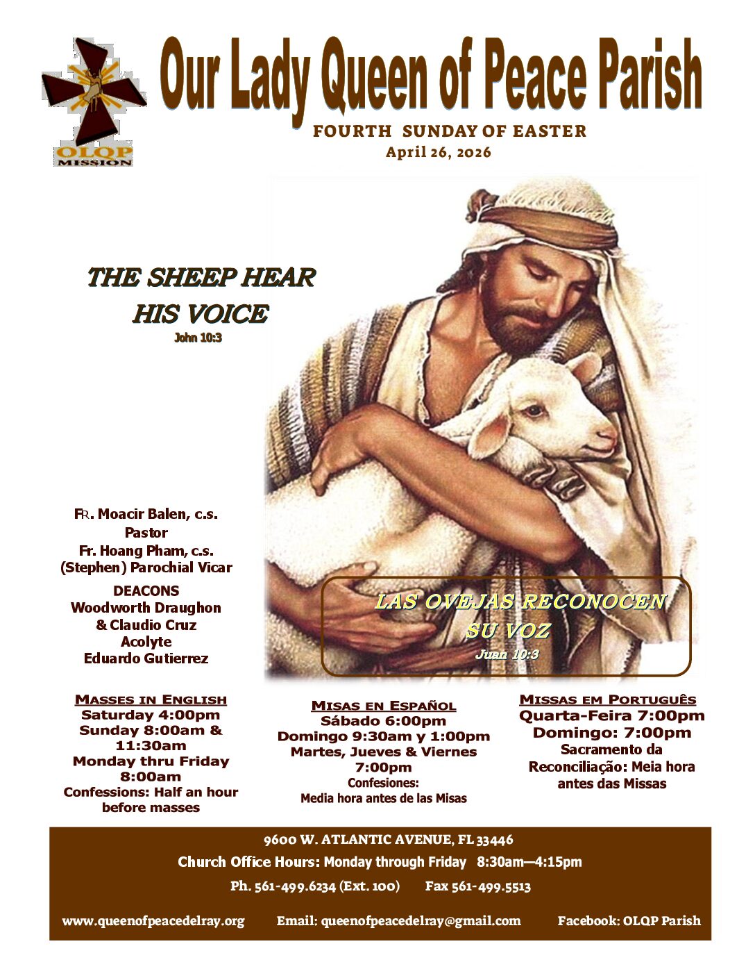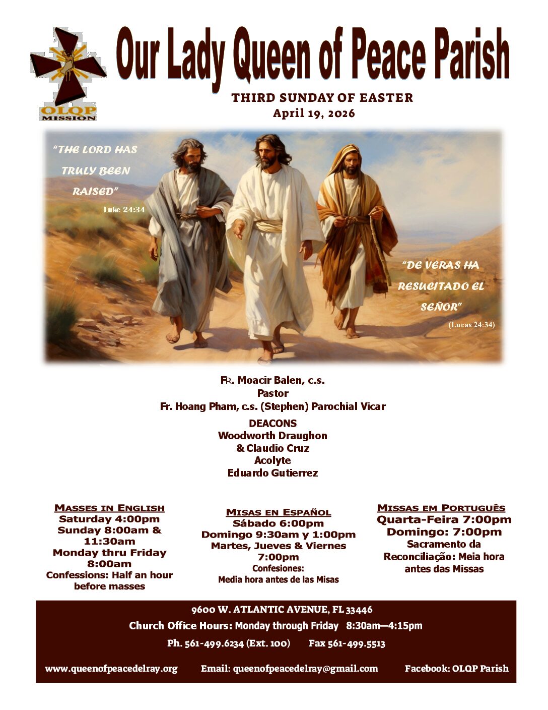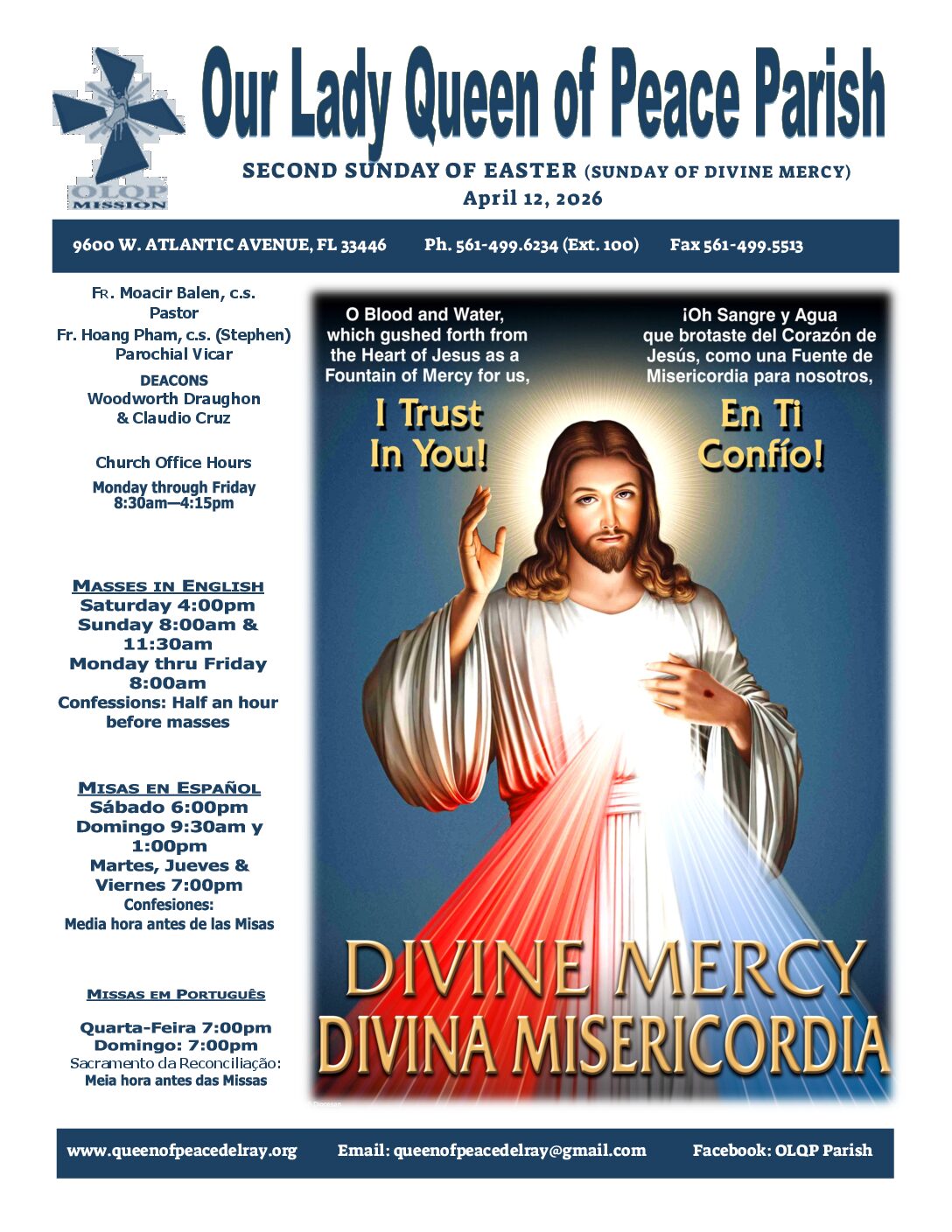 E-mail: queenofpeacedelray@gmail.com / Facebook: OLQP Parish